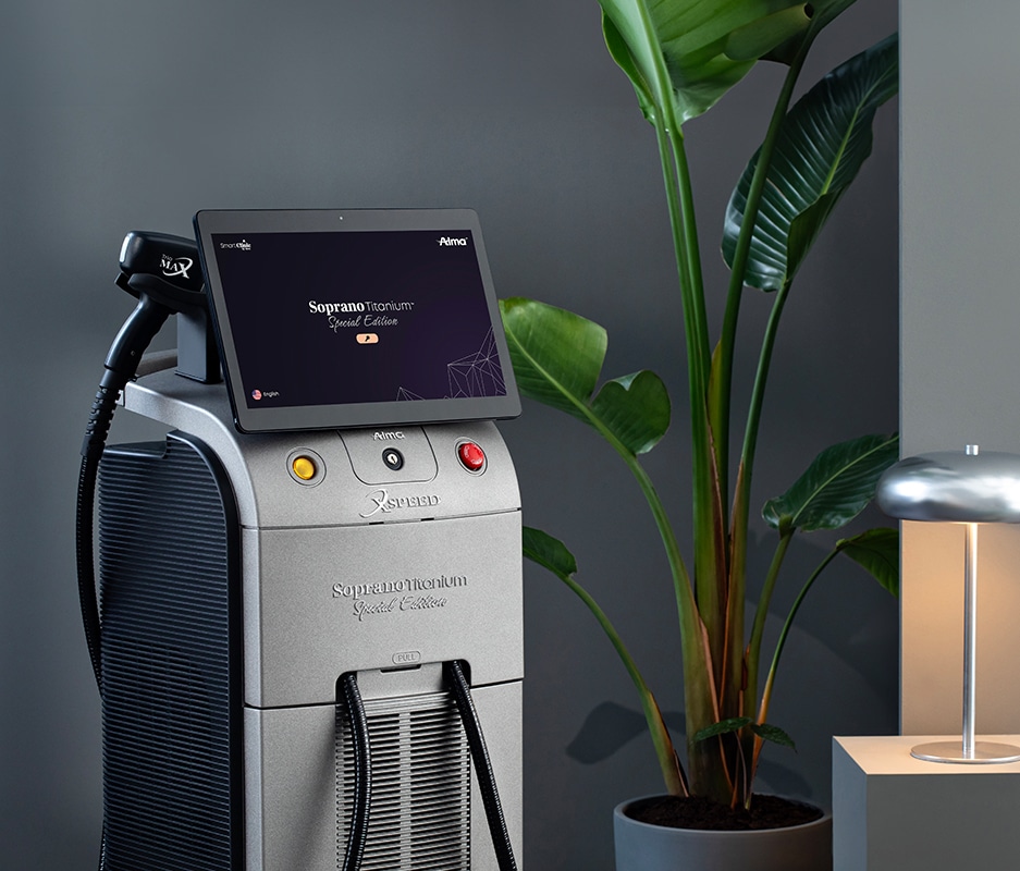 Soprano Titanium führt Almas proprietäre SHR-Technologie in die Zukunft. Die 3D-Technologie kombiniert gleichzeitig drei Wellenlängen für eine verbesserte Wirkung, eine Spotgröße von 4 cm ermöglicht die schnelle Behandlung großer Areale und die innovative ICE Plus-Technologie kühlt ständig die Haut. Dies gewährleistet eine sichere, praktisch schmerzfreie Behandlung, die sich für alle Hauttypen eignet und zu jeder Zeit im Jahr durchgeführt werden kann.