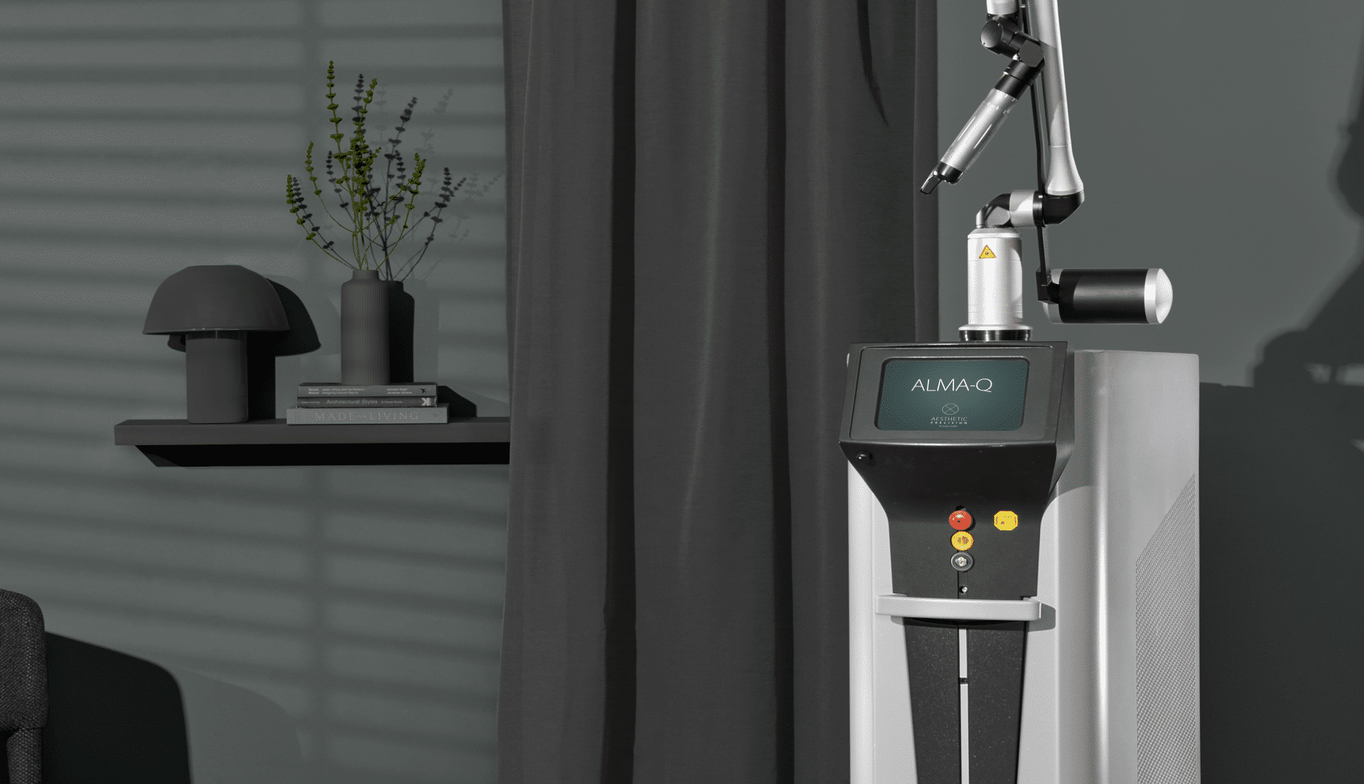 Der leistungsstarke Q-Switch-Laser ist die effektivste Methode zur Entfernung natürlicher oder künstlicher Pigmentierung und minimiert gleichzeitig das Risiko einer Schädigung des umliegenden Gewebes. Alma-Q erzeugt ultrakurze Nanosekundenimpulse, die einen photoakustischen Effekt auf die Tinte oder das Pigment erzeugen. Dies führt zu deren Fragmentierung und anschließender Beseitigung durch das körpereigene Immunsystem.