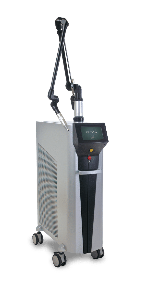 Alma-Q bietet mehrere einzigartige technologische Innovationen, darunter: fraktionierte Abgabe und Tiefenkontrolle für Verjüngungsbehandlungen, Optionen für eine Mikrosekunden-Pulsbreite zur Behandlung einer breiten Palette von Indikationen und zwei Wellenlängen für die Entfernung der meisten Tätowierungen.